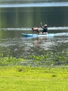 Laura was happy to have the lake so she could use her paddle board. Once again, Gwennie went with her a lot.